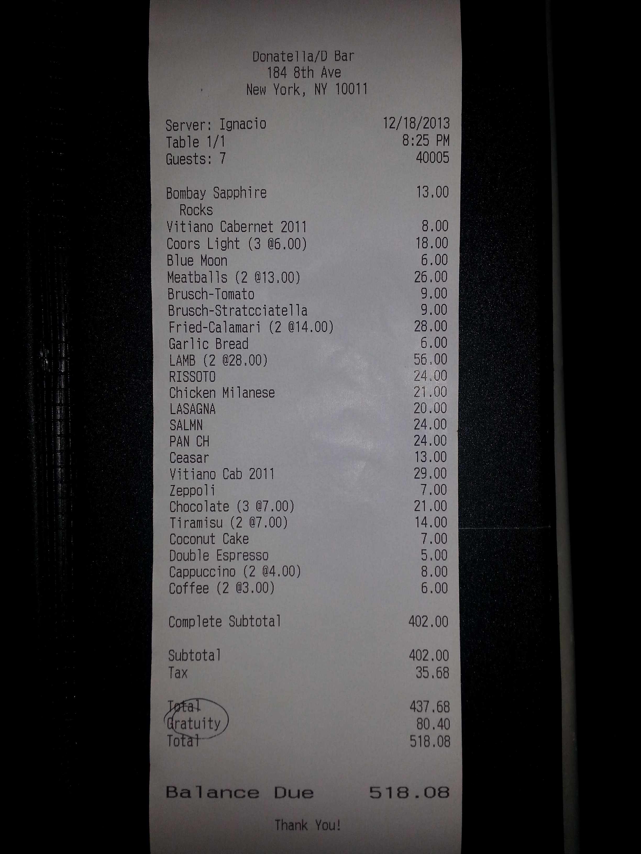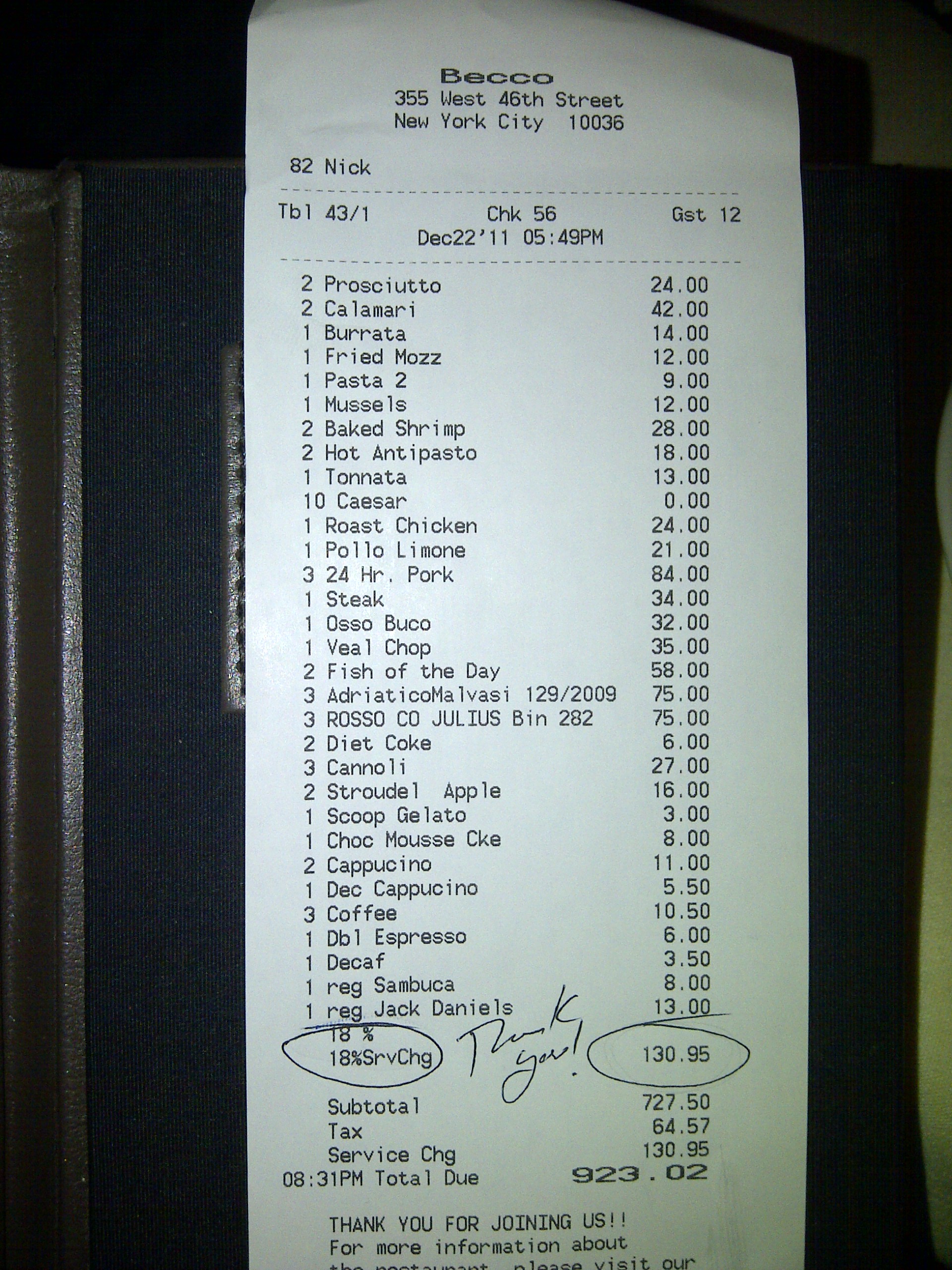 Italian, Theater District Dec 22 - Picked by Kevin |